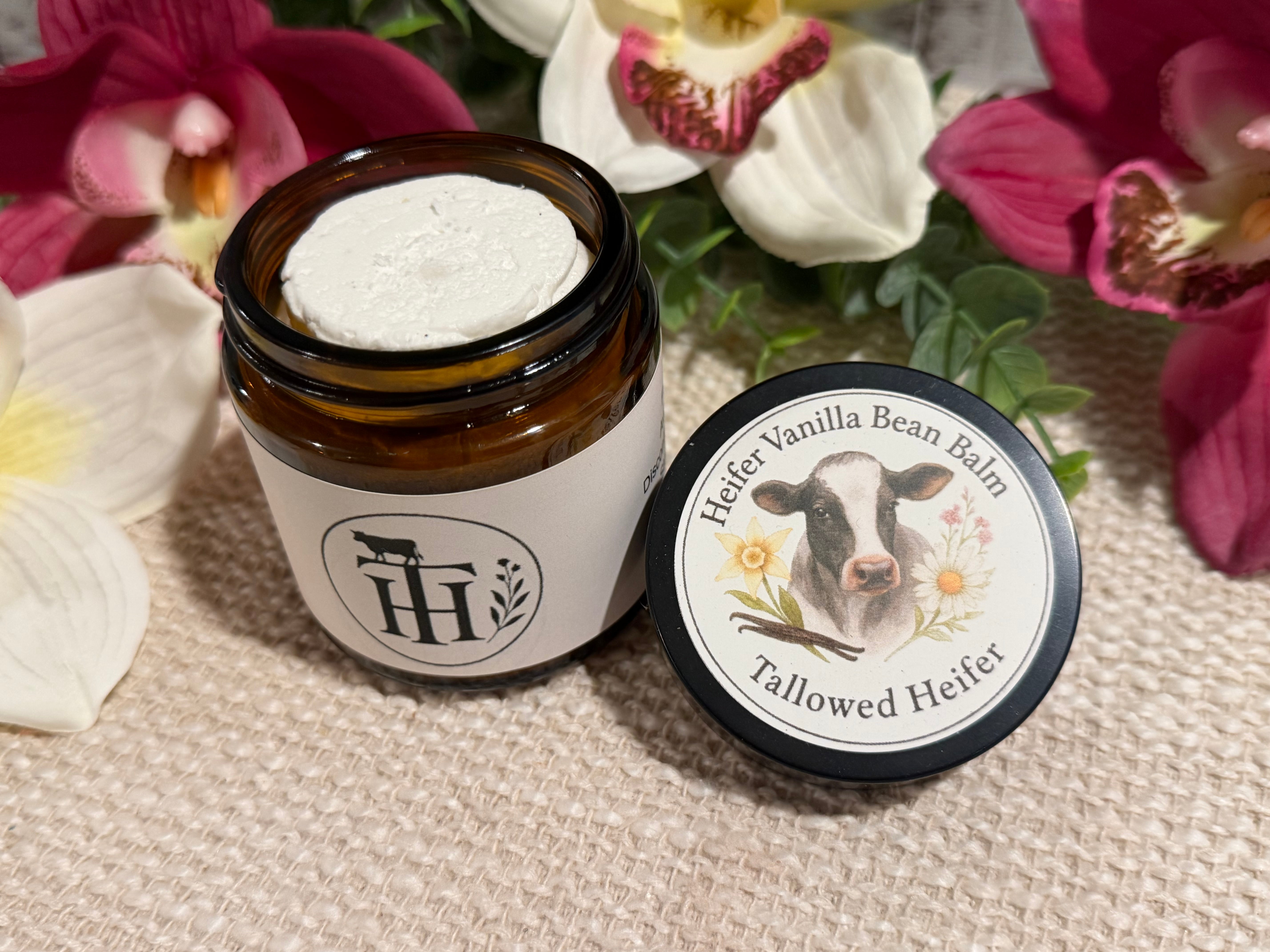 Our Heifer Vanilla Bean Balm isn’t just another moisturizer — it’s a jar of pure, creamy indulgence. Handcrafted from grass-fed vanilla-infused tallow, rich mango butter, jojoba oil, and vitamin E, this balm nourishes deeply while leaving your skin silky and radiant.